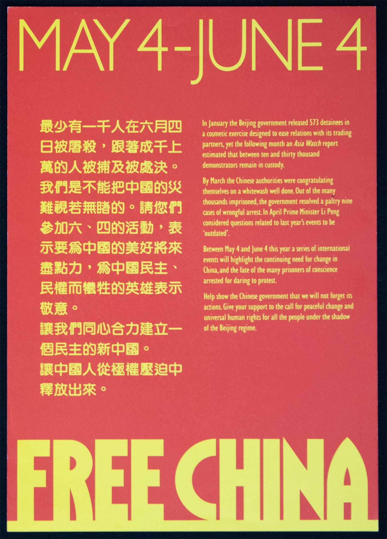 FREE CHINA MAY 4-JUNE 4 PROGRAMME OF EVENTS