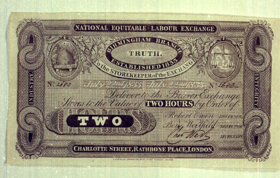 "token & banknote (monochrome) & Owenite & 2 Hours & 1833" [NMLH.1991.91.34]