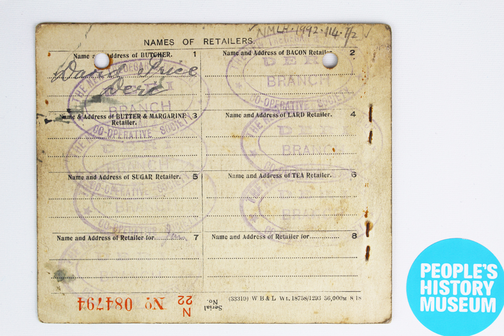 "3 Ration Books, 1918. Martha Mary Holified and George Holifield, Deri & Tredegar Co-oop" [NMLH.1992.114.1]