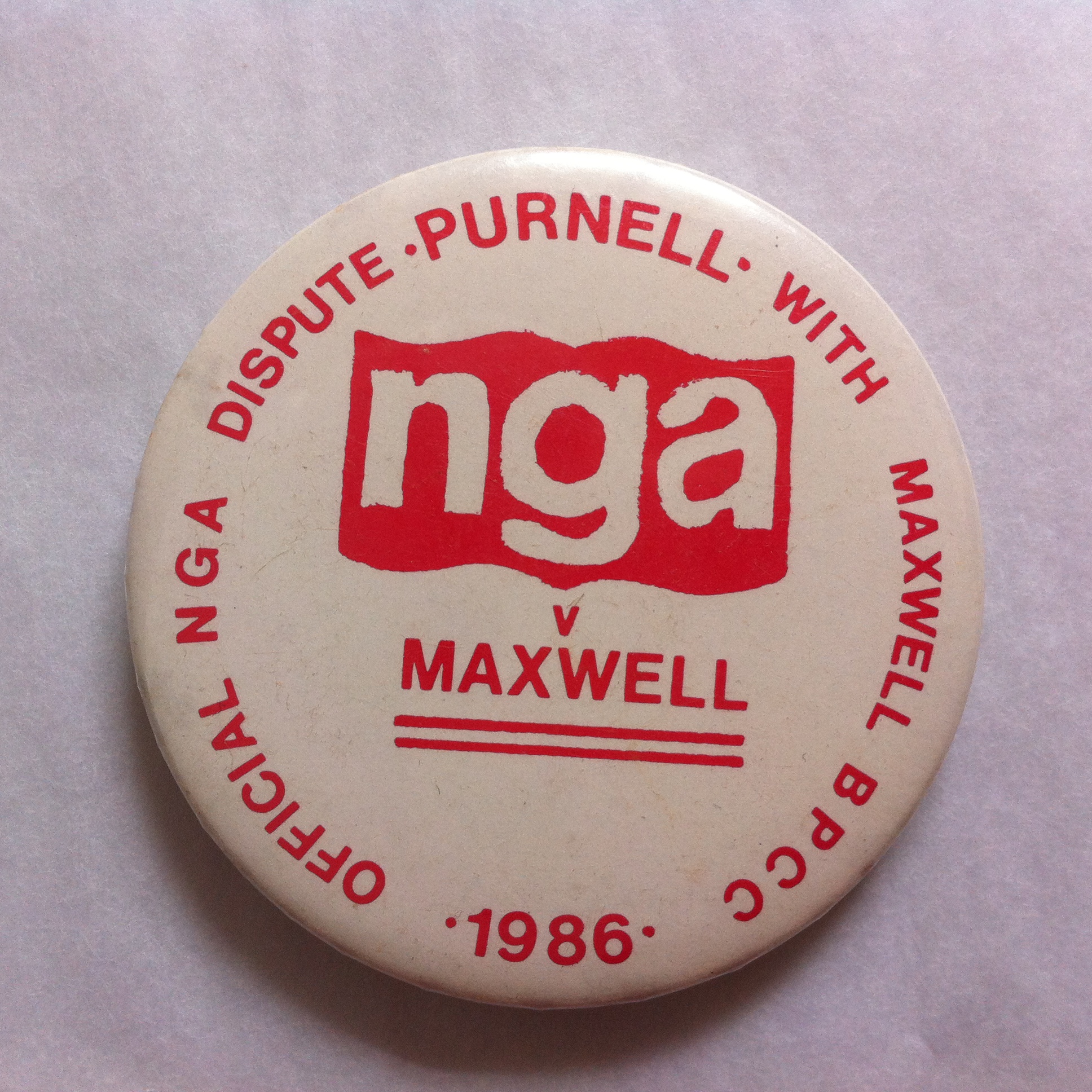 "NGA v Maxwell badge, 1986" [NMLH.2014.21.1]