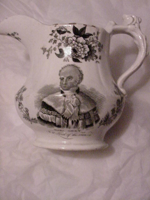 This souvenir jug shows Earl Grey, elected Prime Minister in 1830; the other side reads 'REFORM'. It commemorates the 1832 Reform Act, extending the right to vote to approximately one man in seven. Grey is described as First Lord of the Treasury, a title still held by Prime Ministers. Reform Bills were tabled in 1831 but not passed. Riots broke out before the Bill was passed in June 1832. Most ordinary people did not benefit, although large towns obtained representation. New voters had to be male and live in property worth a certain value. The working classes were largely ignored and many turned to Chartism.