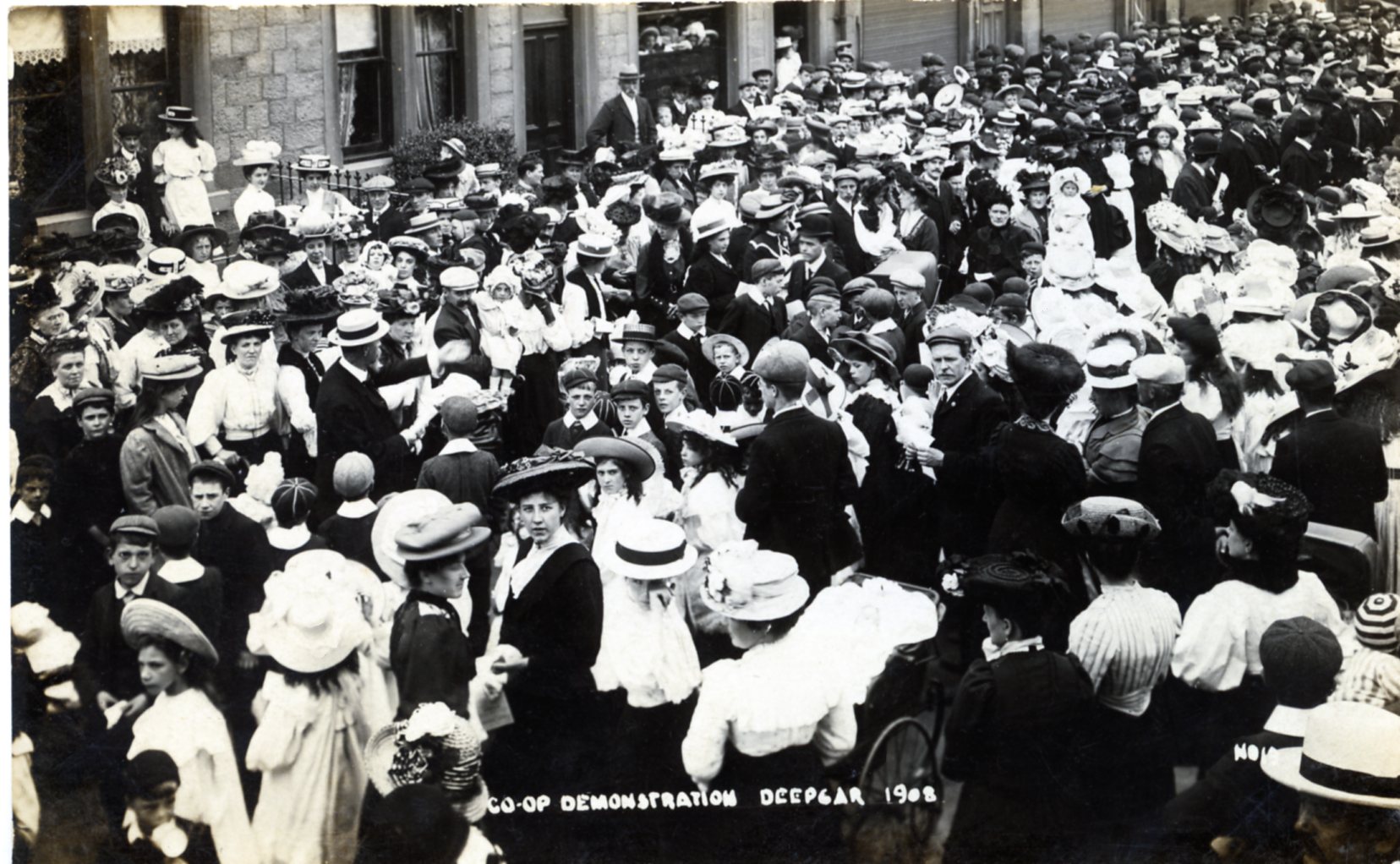 "Co-op demonstration, Deepcar, 1908, postcard" [NMLH.2014.26.1.36]