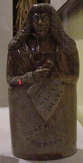 "figure & ceramic & cordial bottle & Lord Brougham & Brougham's Reform Cordial & 1832 & The Second "Magna Carta"" [NMLH.1992.1073]