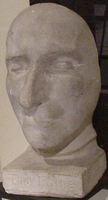 Here is Paine's death mask . When he died in 1809 Paine was buried in America. Ten years later William Cobbett retrieved the body, intending to bring it home. This is the last that was seen of it.