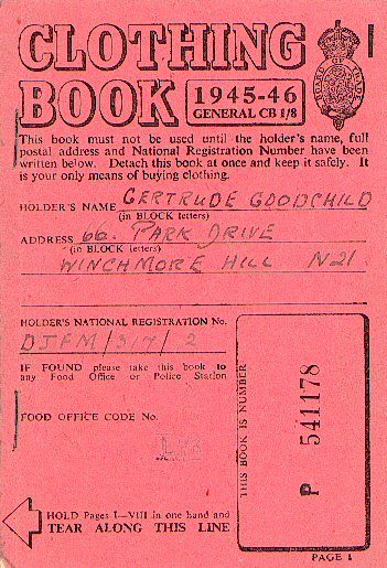 During World War II (1939-1945), it soon became difficult to import clothing from abroad. Also, the war effort needed much of the cloth for military uniforms and parachutes. So clothing ration books were introduced and issued to virtually every man and woman in Britain. Each person was allowed a maximum of 66 coupons per year. Like food rationing too, clothes rationing continued well beyond the end of the war. Many 'baby-boomers', those born in the late 1940s, will remember the food and clothing ration books and some rationed foodstuffs. The make-do-and-mend of existing clothes that was increasingly part of wartime culture was also to continue into the 1950s. Typical were sewing patches onto fraying jacket elbows and the darning of worn socks.