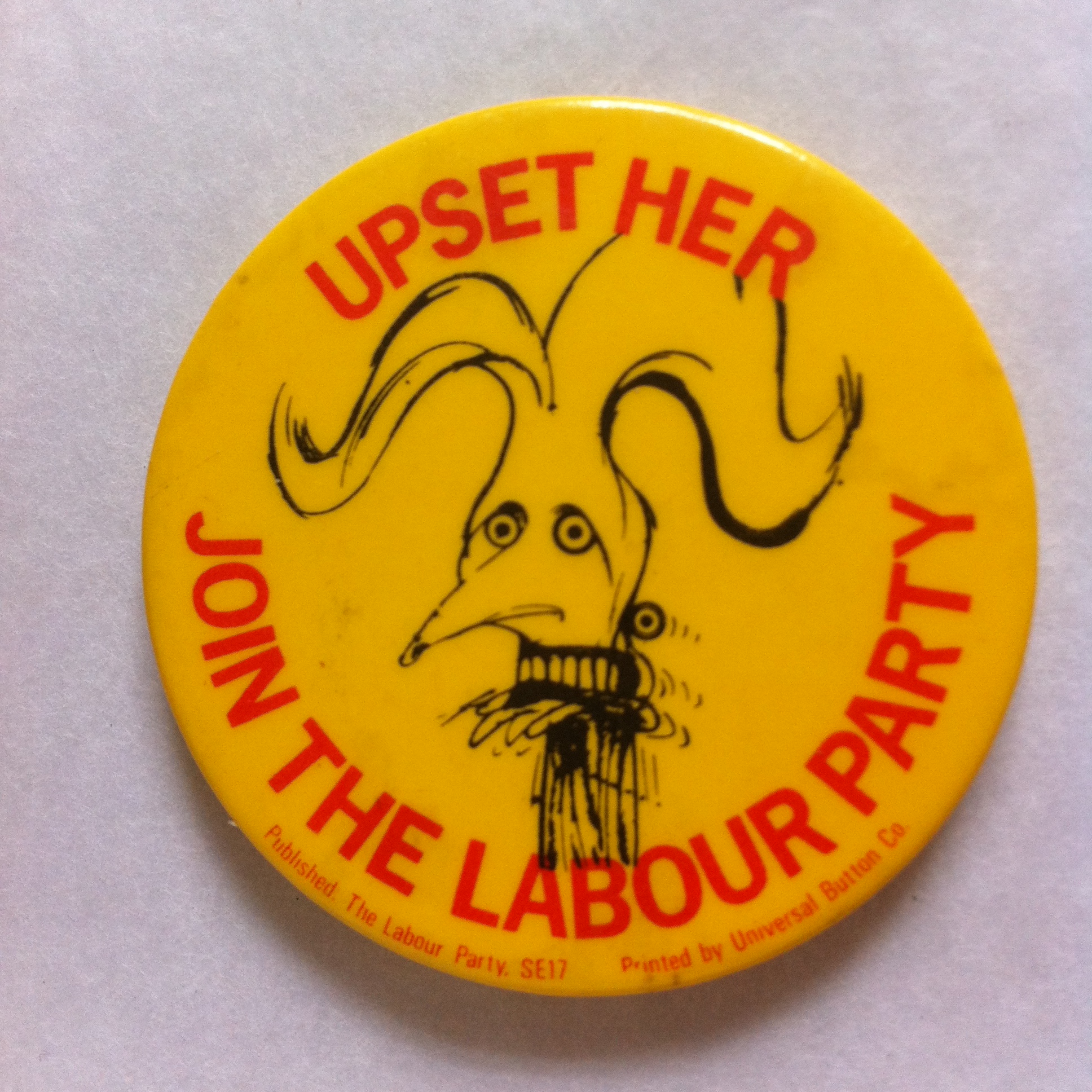 "Upset her, join the Labour party badge" [NMLH.2014.21.47]