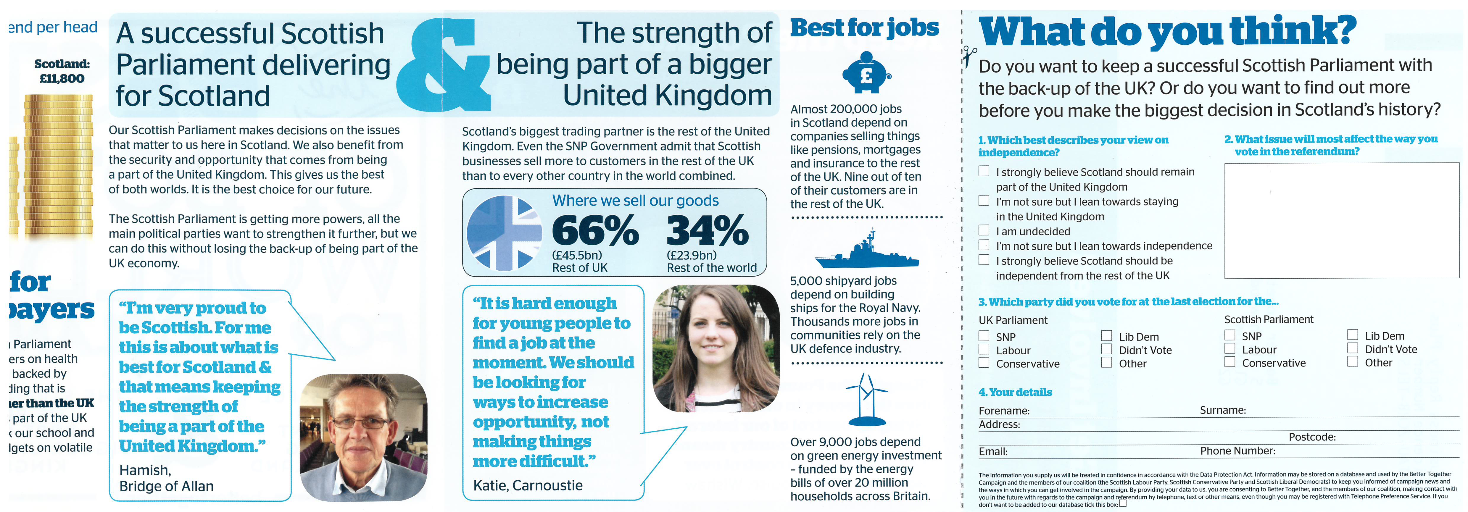 A leaflet produced for the 'Better Together' campaign in 2013, arguing against Scottish devolution from the UK in the upcoming referendum on Scottish independence in September 2014.