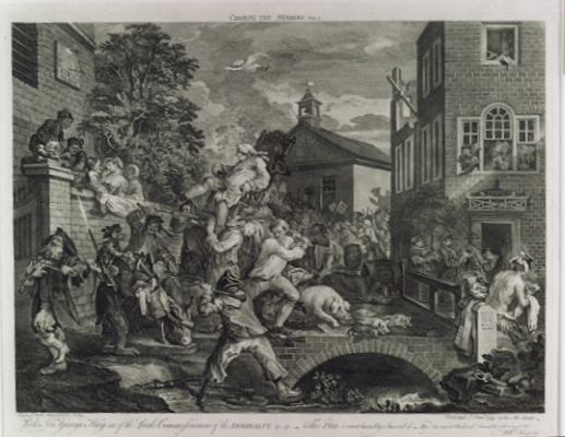 "print & political & satirical & Chairing The Members Plate 4 & To The Right Honble George Hay ... & by William Hogarth & 1758 & mounted" [NMLH.1993.372.24]