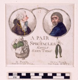 A PAIR OF SPECTACLES EASILY SEEN THRO'. IN PLACE THE BUDGET FULL OUT OF PLACE ...