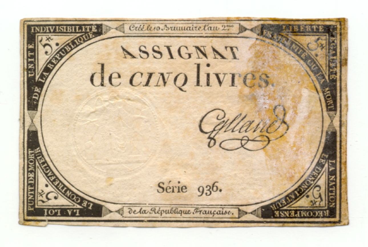 "token & paper & Assignat & De Cinque Livres" [NMLH.1994.24]