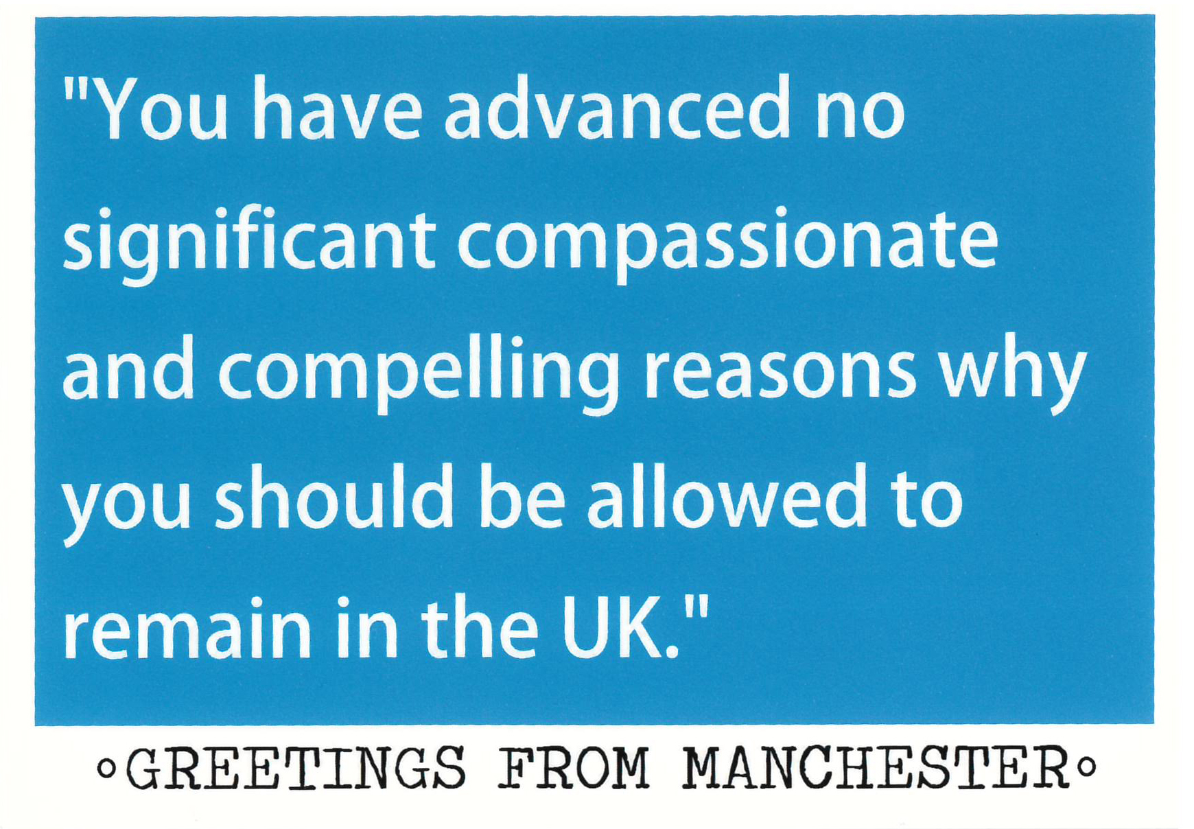 "Refugee and Asylum Seeker postcard, 'Greetings from Manchester', 2012" [NMLH.2014.9.5]