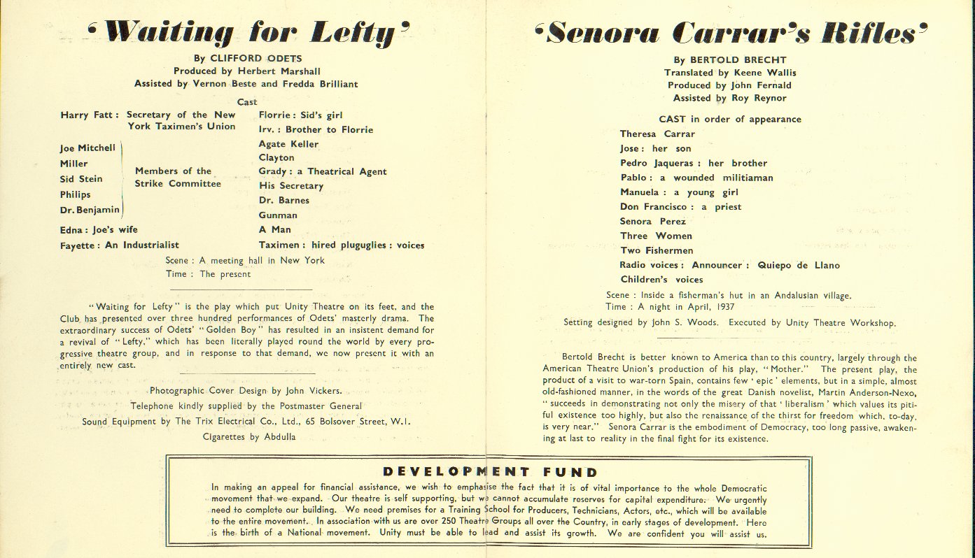 WAITING FOR LEFTY. UNITY THEATRE