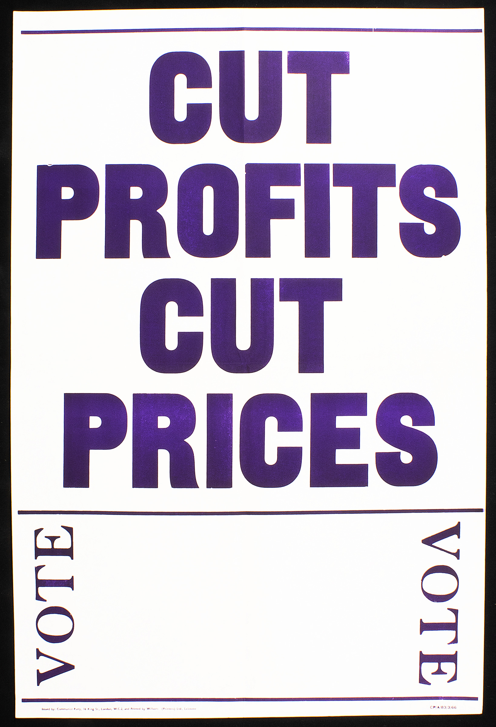 "'Cut Profits Cut Prices. Vote.' Communist Party of Great Britain election poster" [NMLH.1994.168.45]
