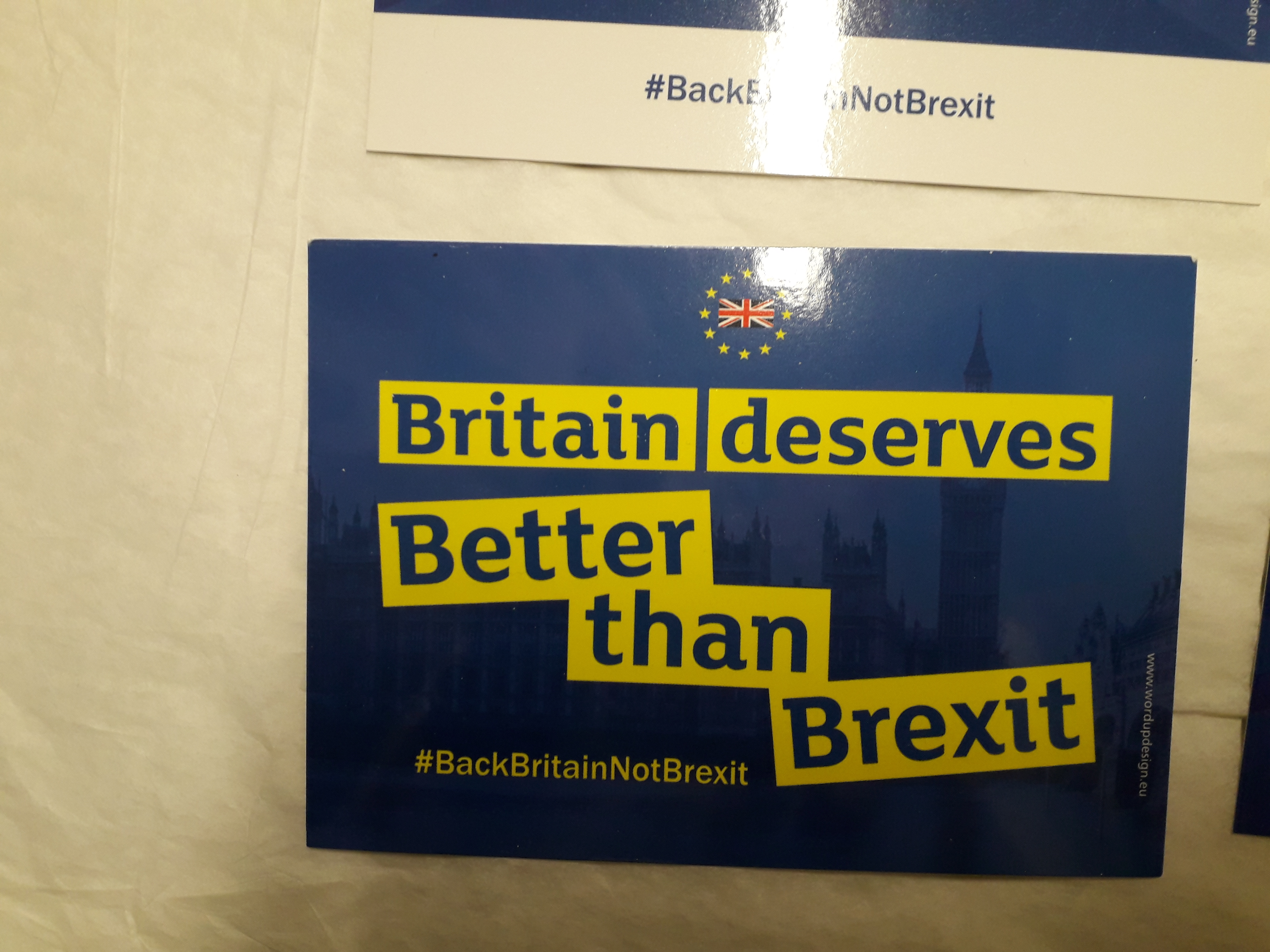 Postcard 'Britain Deserves Better' with the hash tag #BackBritainNotBrexit.