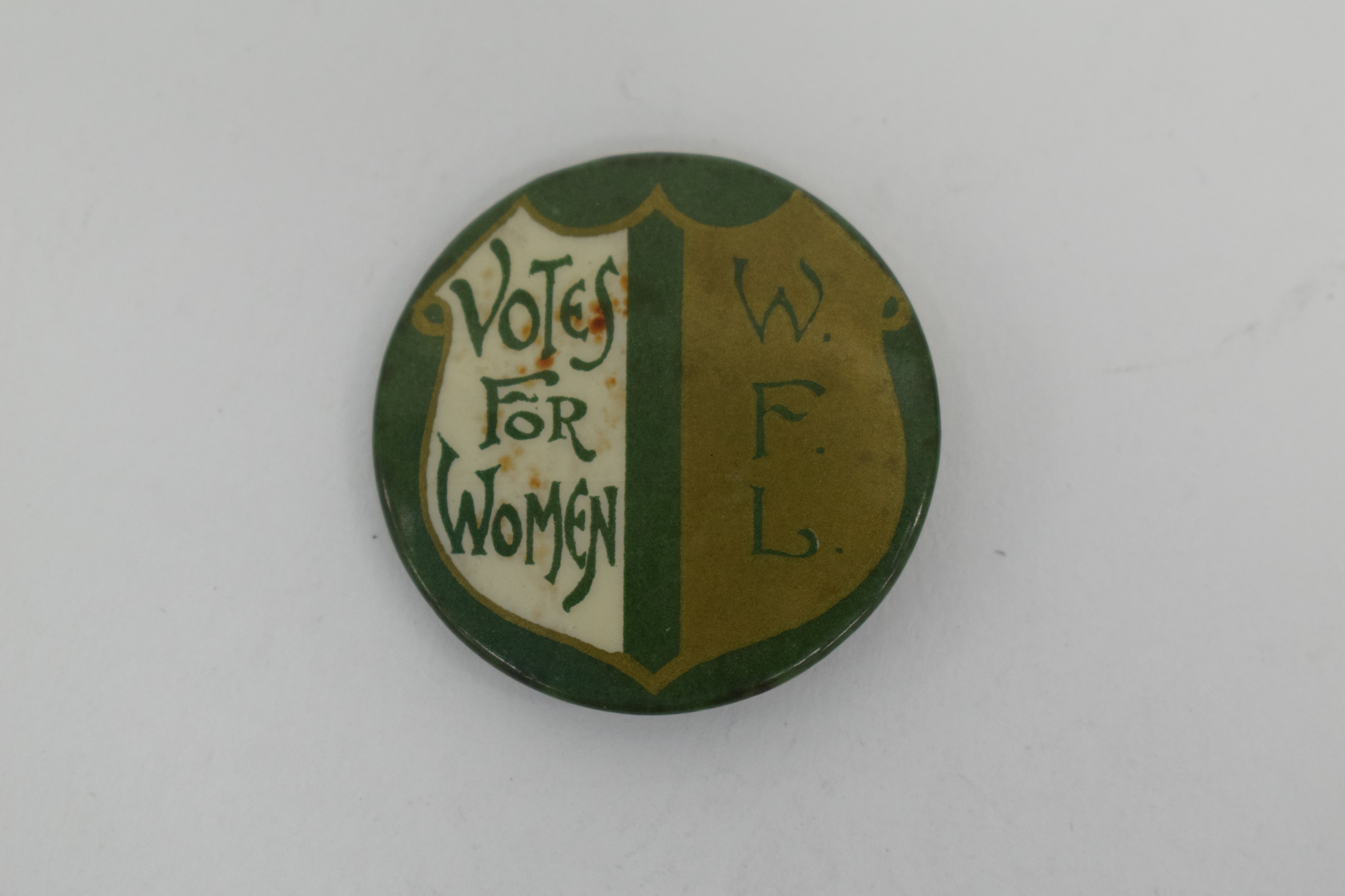 This badge was created by the the Women's Freedom League (WFL), focused on non-violent methods of campaigning for women's suffrage in the United Kingdom.