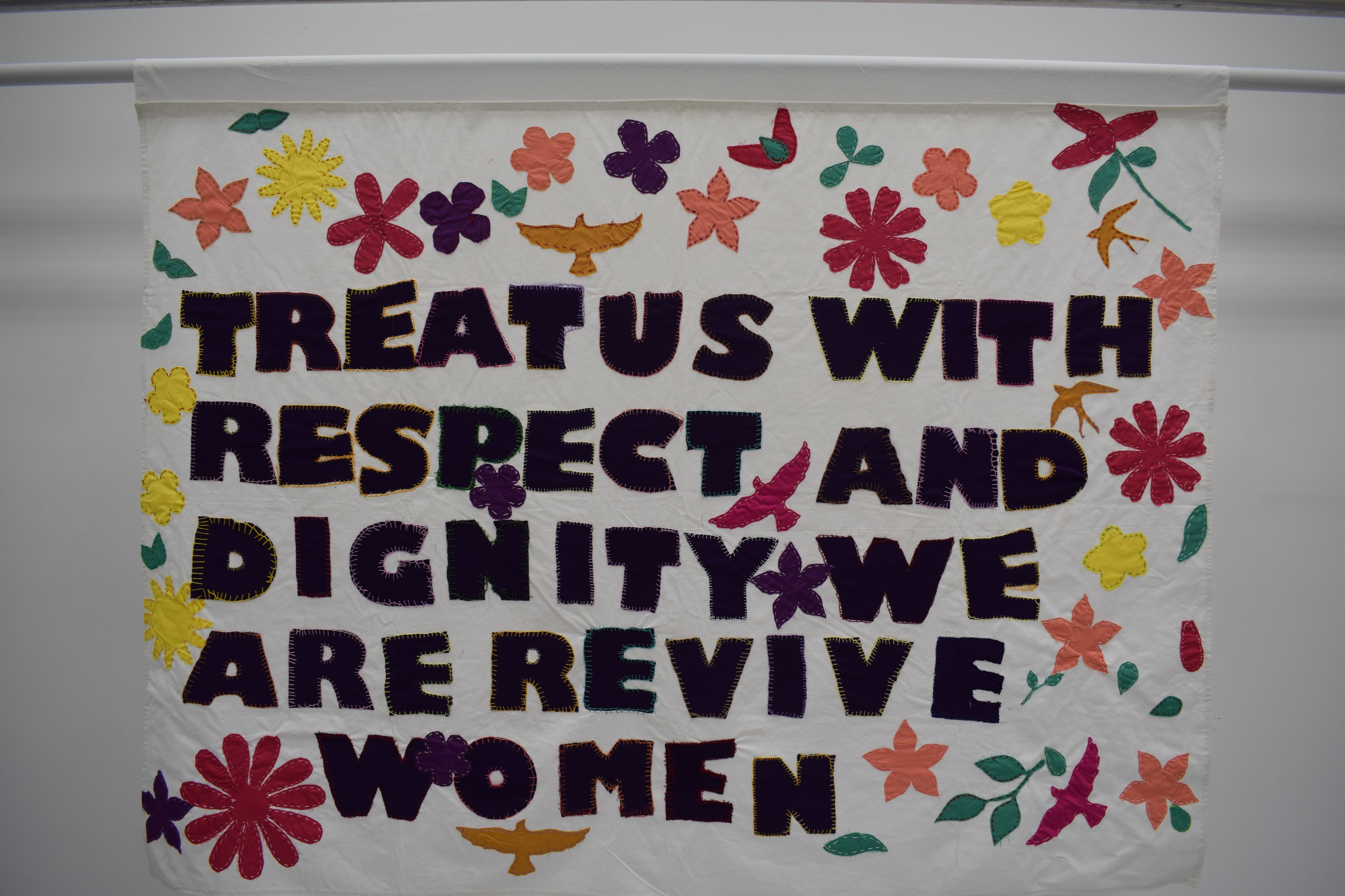 Revive Women's Group Banner, 'Treat Us with Respect and Dignity'