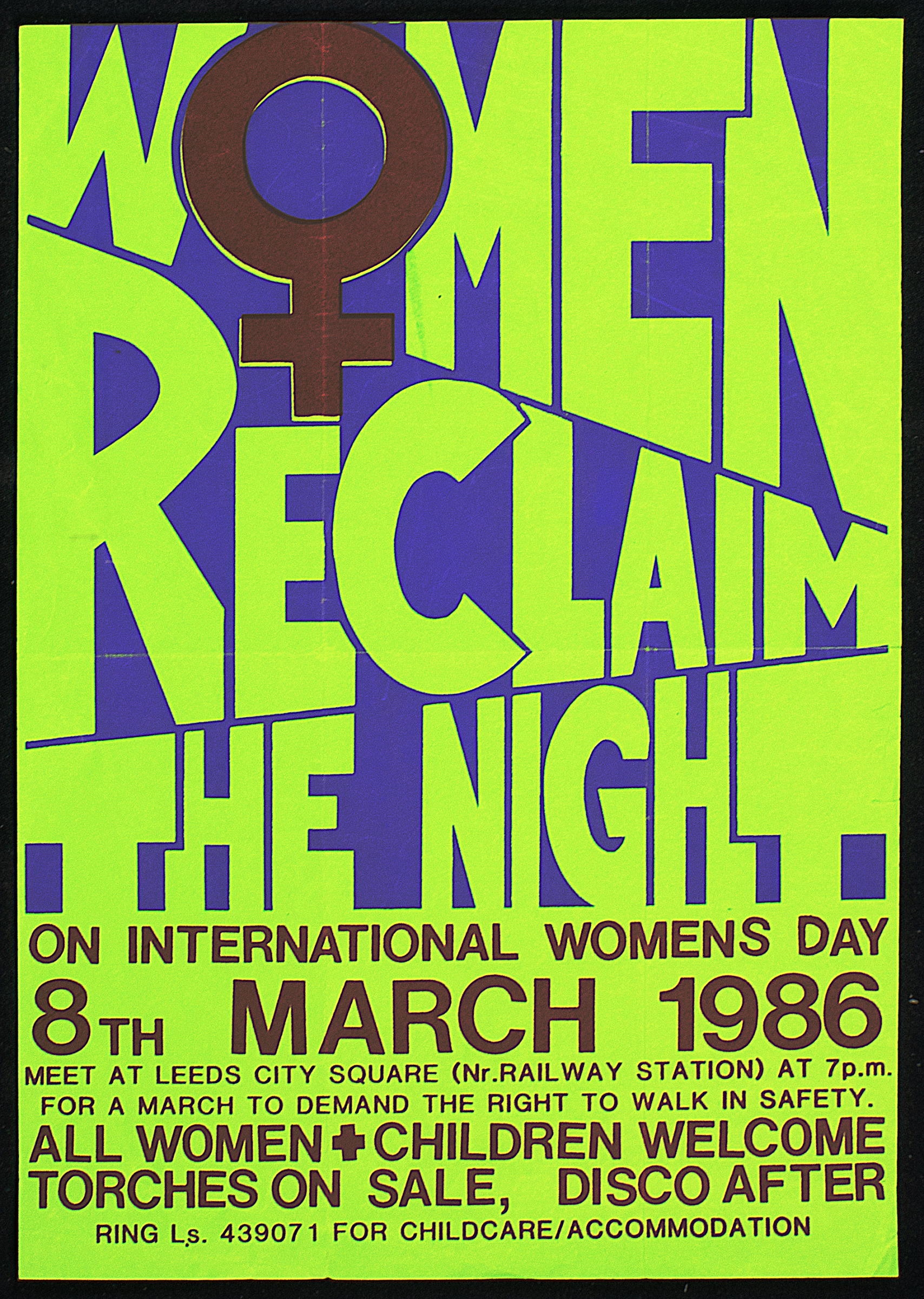 These marches continued annually until the 1990s, but were revived in the 2000s. This poster is advertising a march in Leeds in 1986, to take place on International Women's Day.