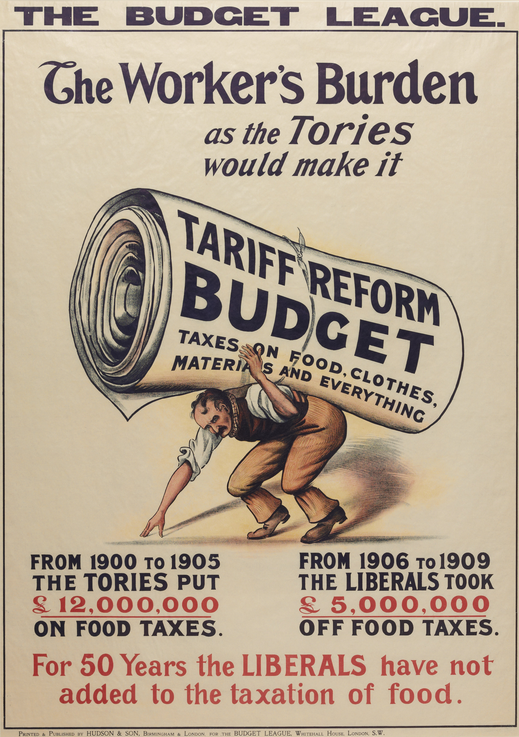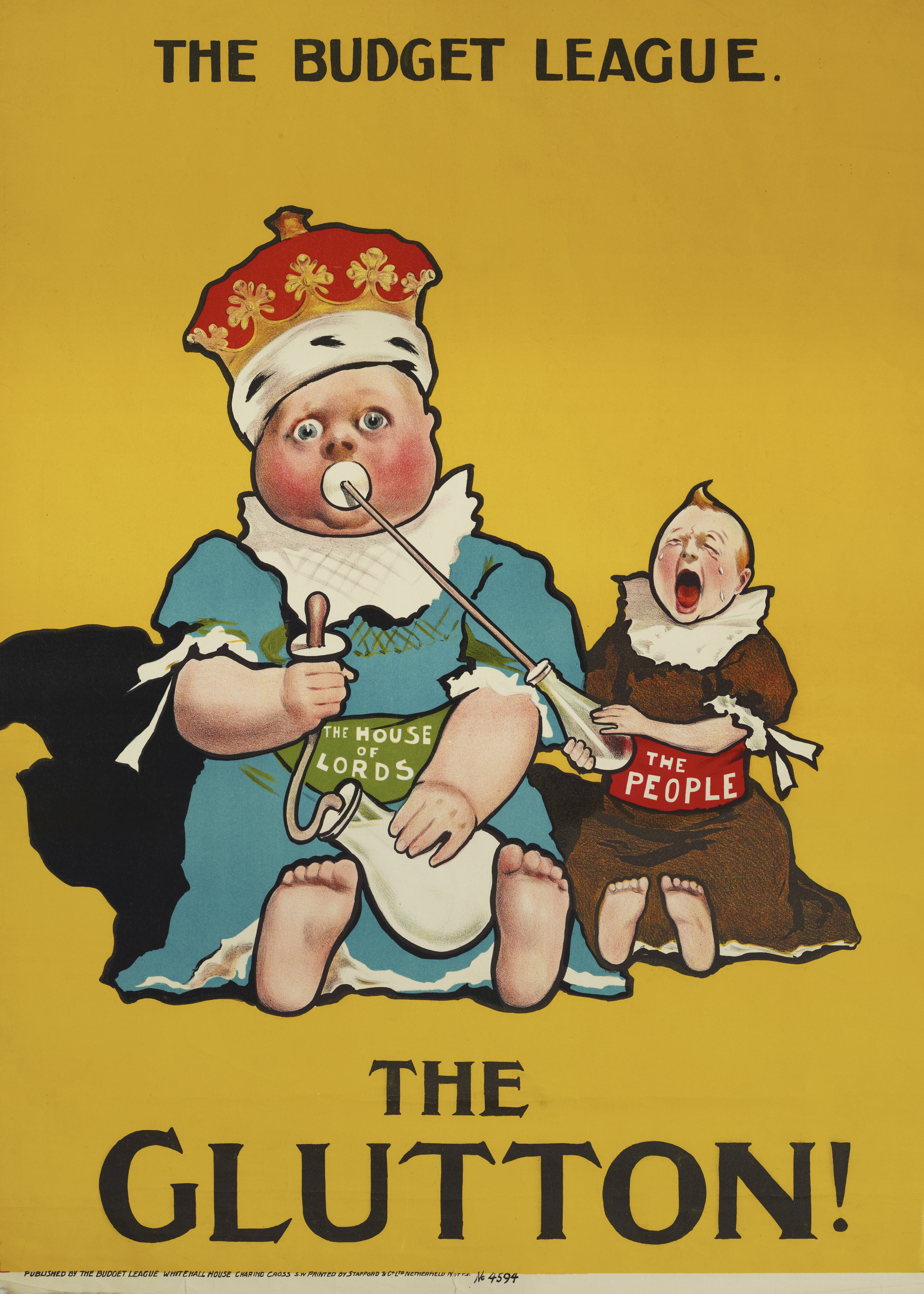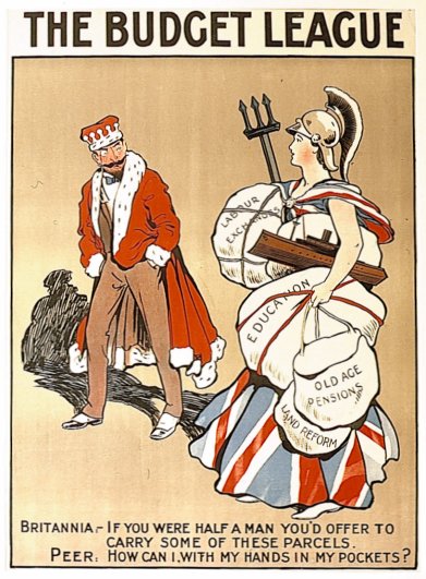 The poster depicts âThe House Of Lordsâ and âThe Peopleâ as babies.⯠Despite having sufficient milk of their own, the Lords steal the milk from the smaller, somewhat under-nourished people. The Budget League was a pressure group aligned to the Liberal Party.â¯