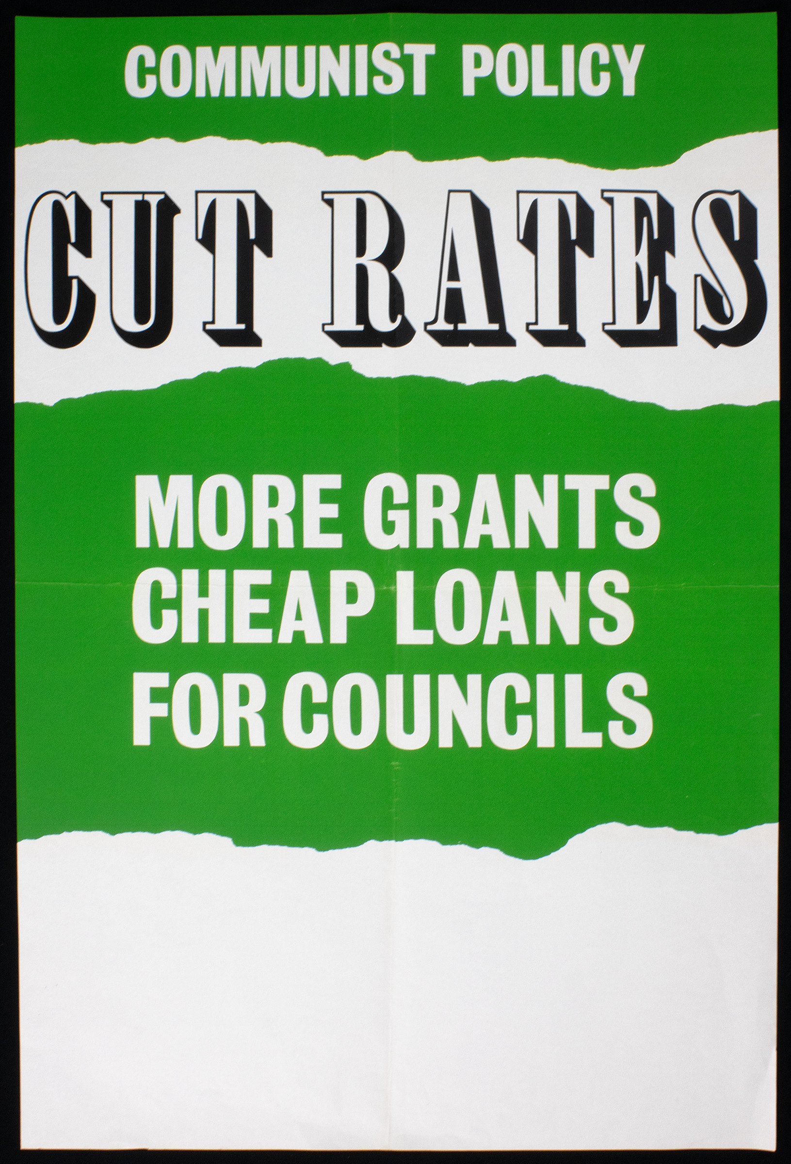 "'Communist Policy: Cut Rates. More Grants. Cheap Loans For Councils' poster" [NMLH.1994.168.582]