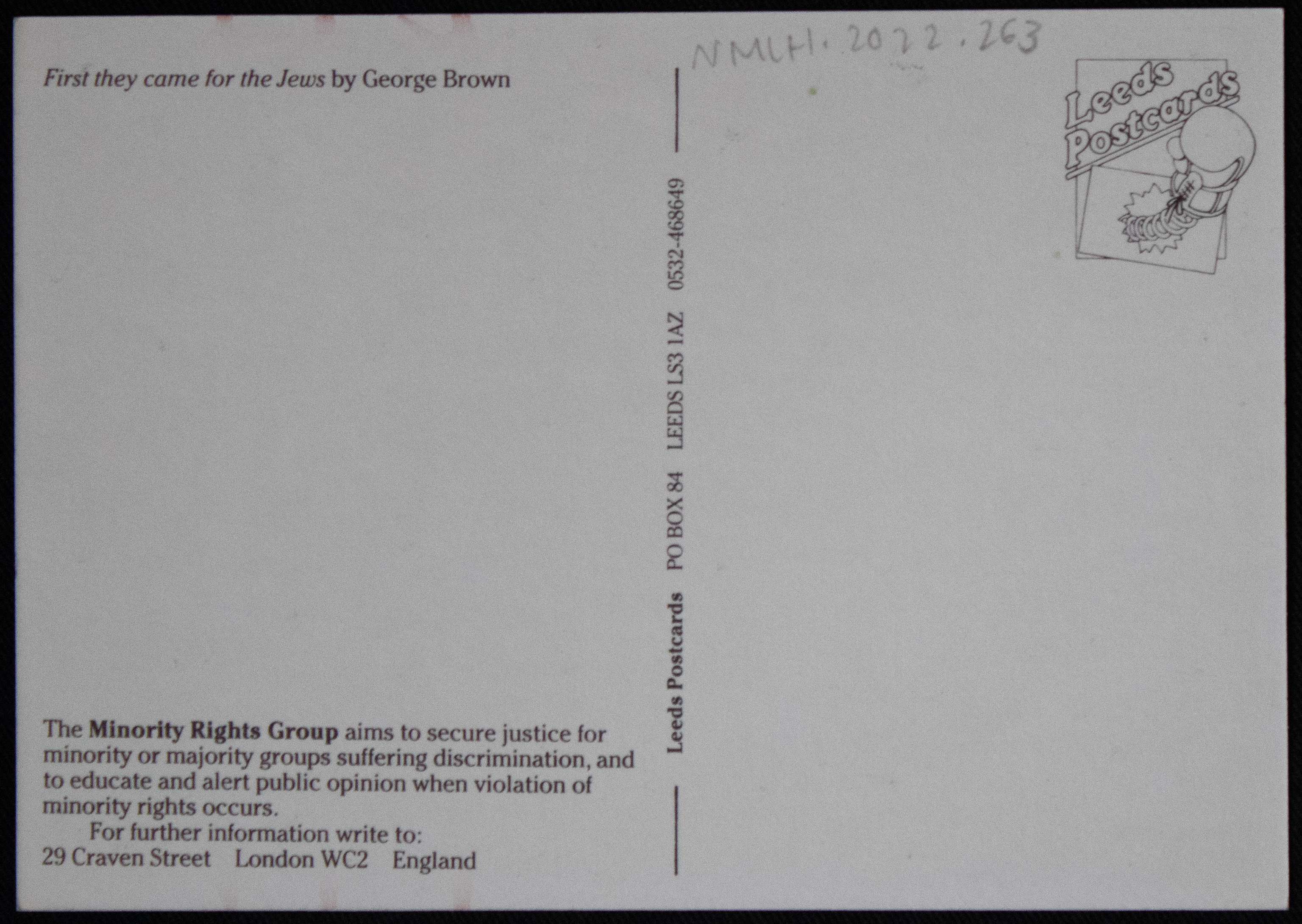 "'First they came for the Jews' Pastor Niemoeller postcard" [NMLH.2022.263]