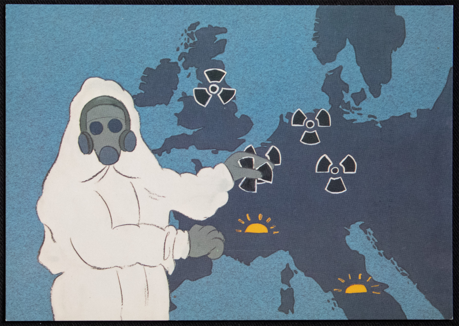 Throughout the 1980s, Leeds Postcards published a number of cards satirising the threat of nuclear war, and celebrating the movement against the bomb,