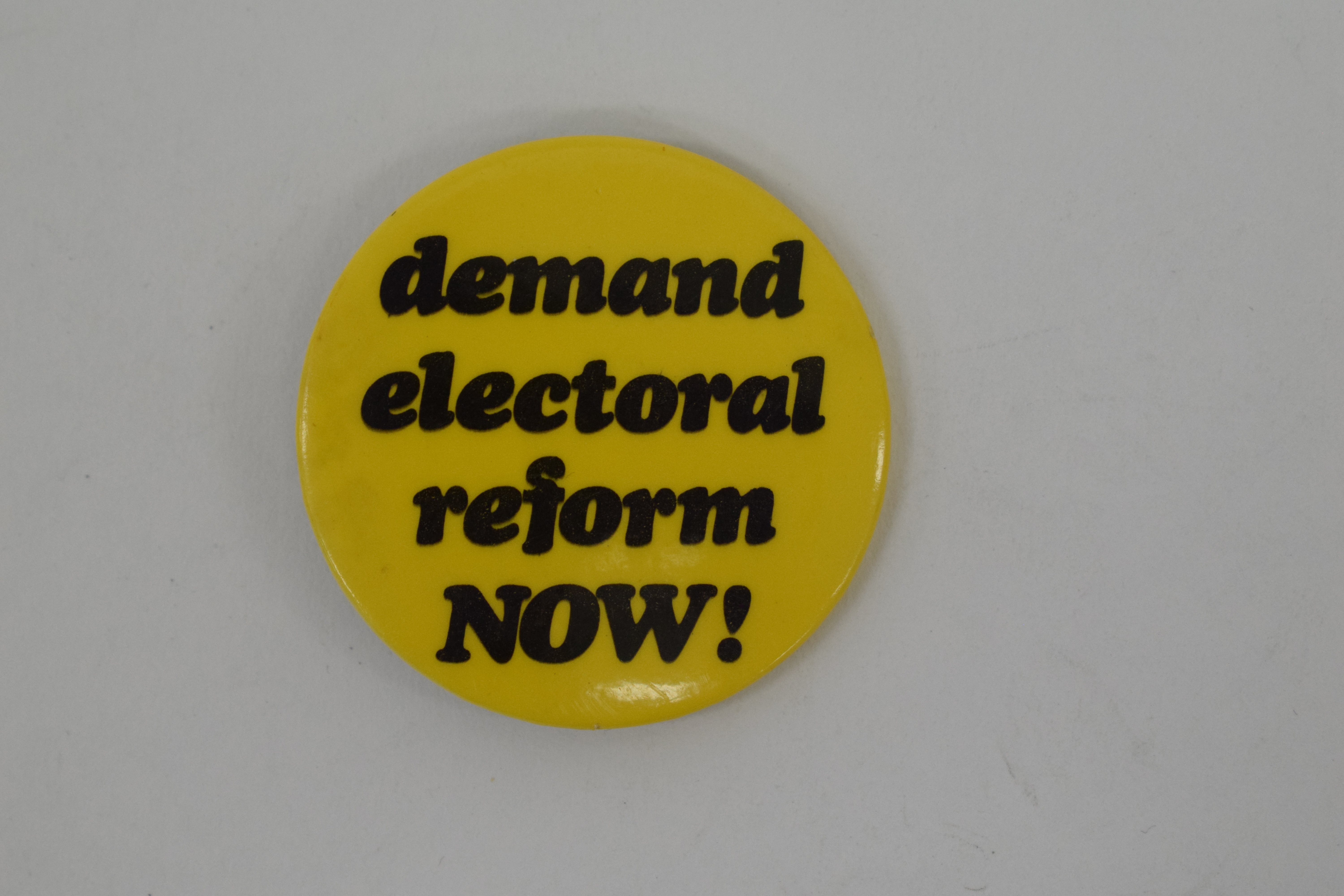 "demand electoral reform NOW badge" [NMLH.2023.5]
