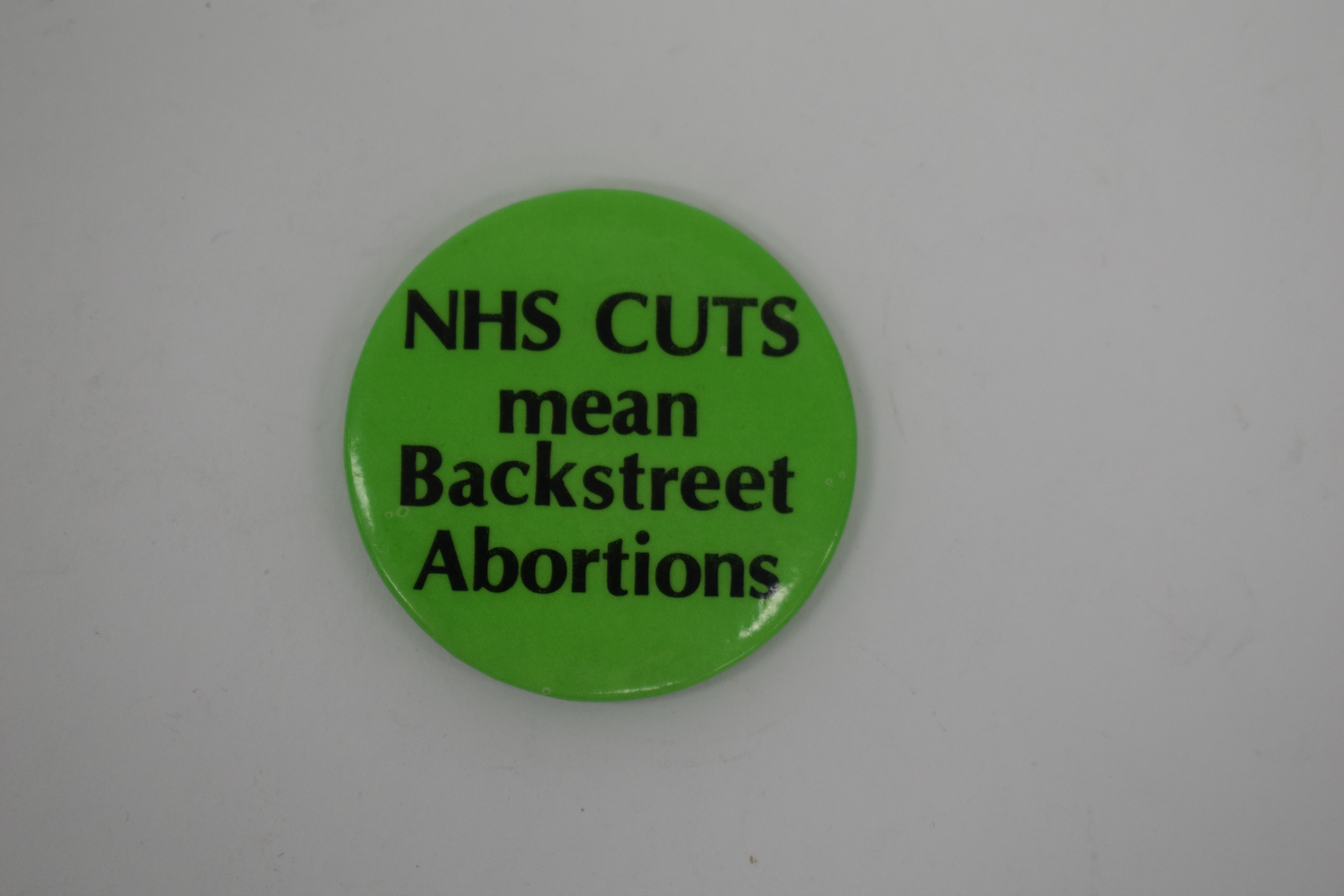 "NHS cuts mean backstreet abortions badge" [NMLH.2001.8.1.44]