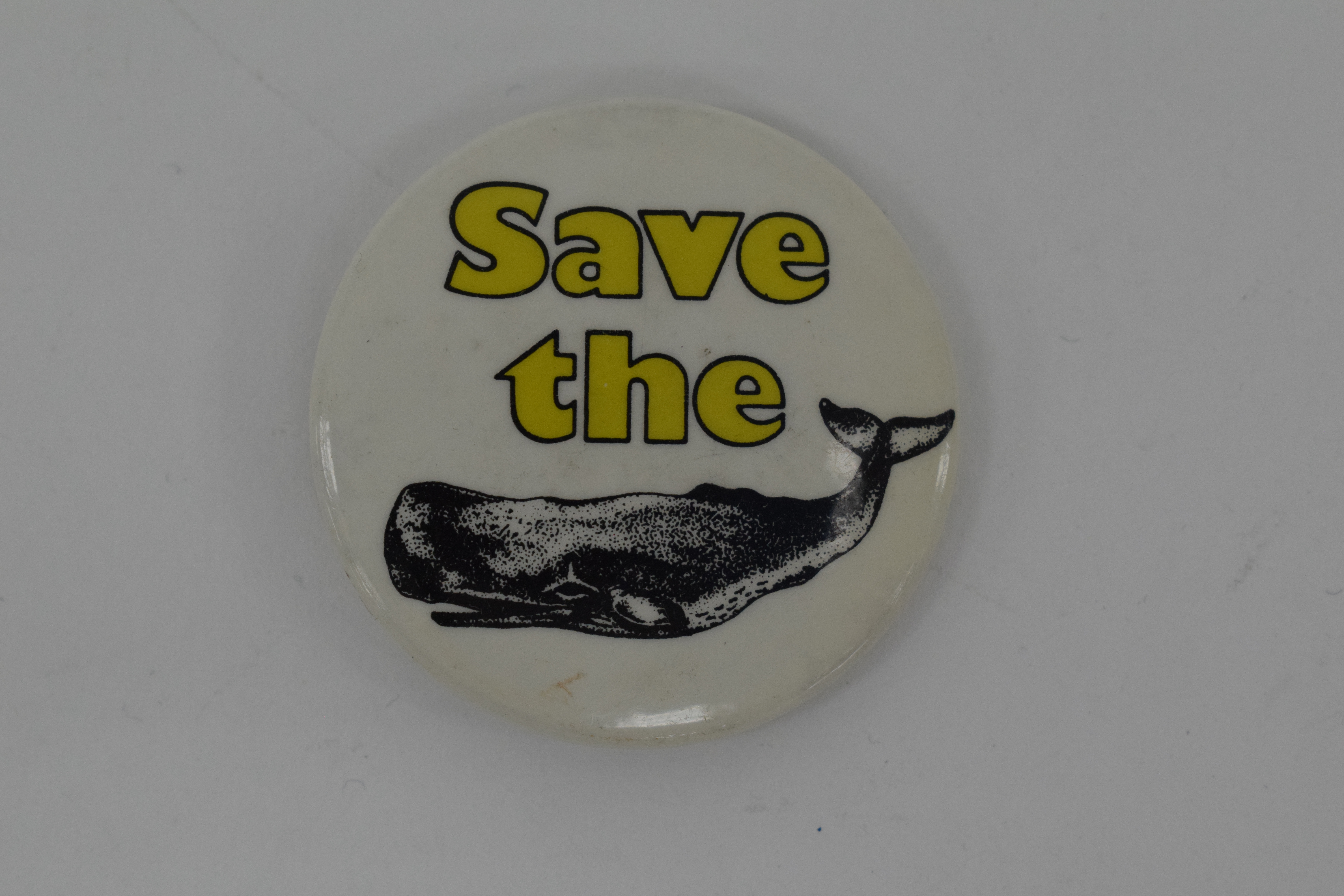 Round white badge with "Save the" in yellow, followed by a greyscale whale image.