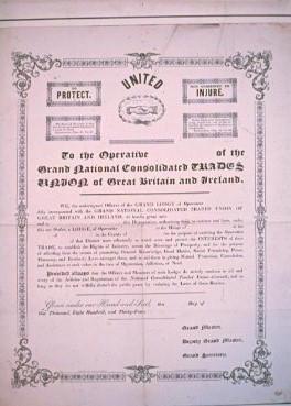 "certificate & dispensation & emblem & Grand National Consolidated Trades Union & 1834 & framed and glazed" [NMLH.1995.60]