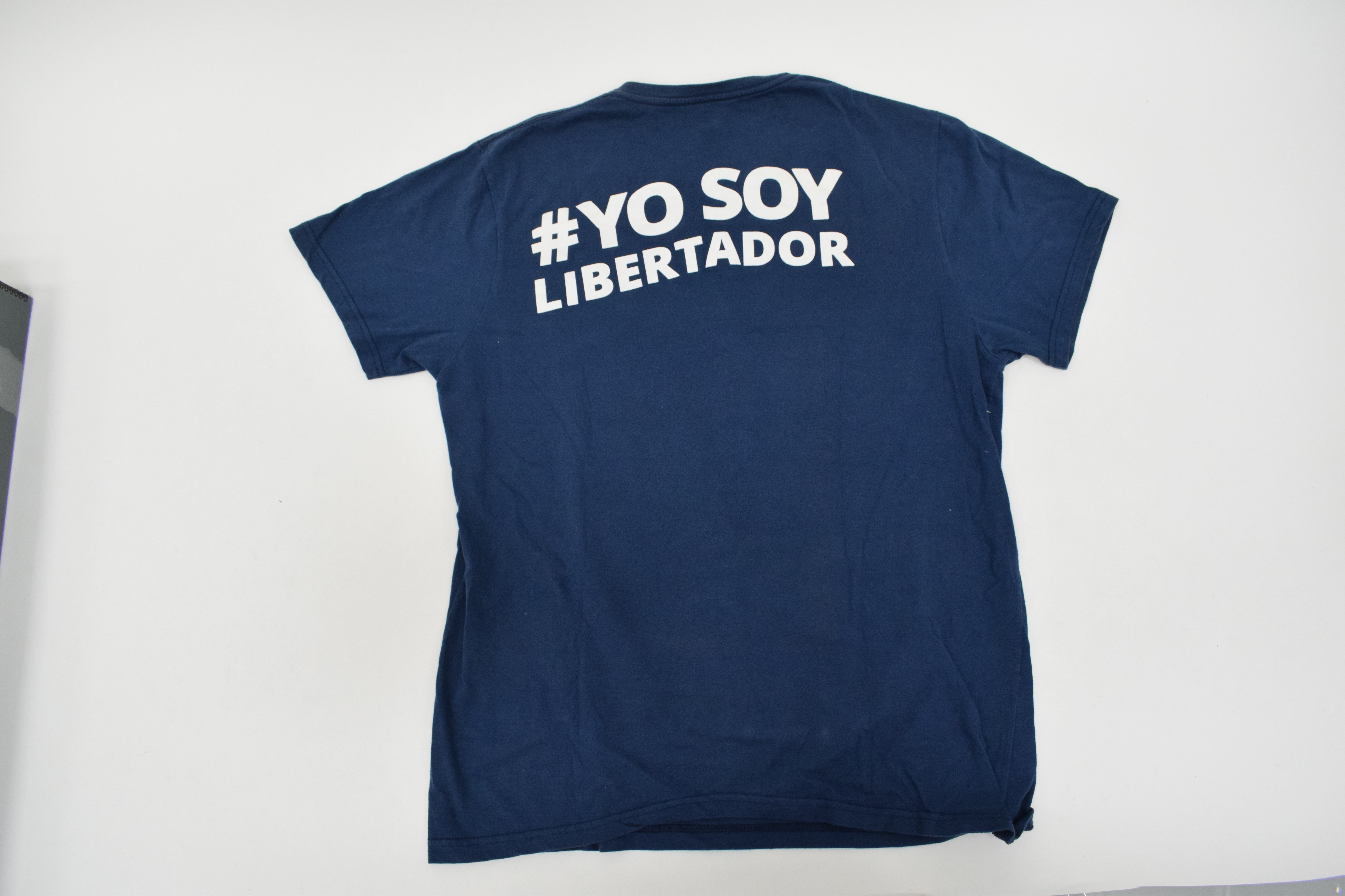 This t-shirt was worn during pro-democracy protests in Venezuela during the late 2010s. It features the face of Simon Bolivar, who led the country to independence from Spanish colonisation in the 1810s, and is known as 'El Libertador' (the Liberator). The text on the t-shirt means "I am the Liberator" drawing a comparison between Bolivar and the protestors.
