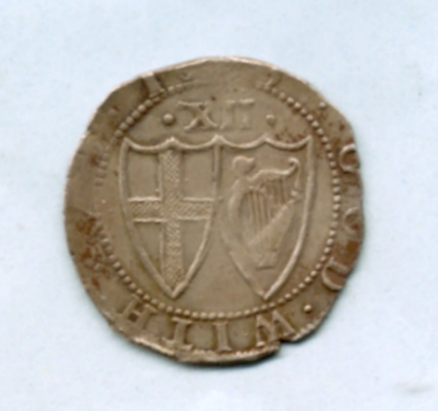 Features: shield, England, Ireland, harp. Coin illustrates the time when Britainb was a Republic.