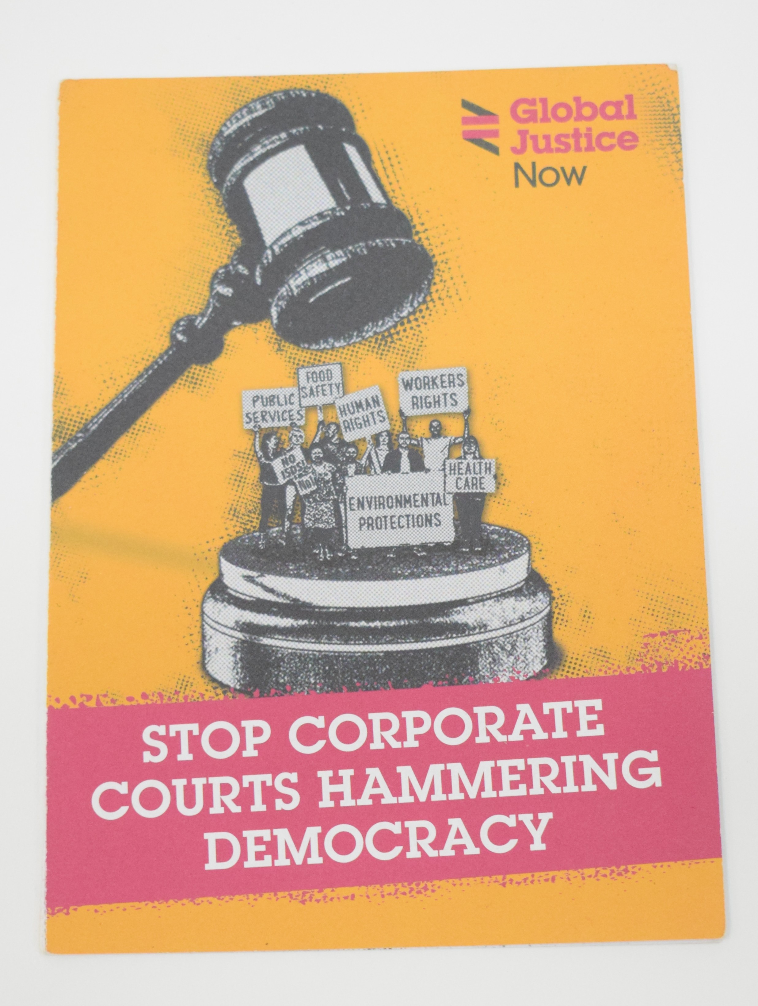 "Leaflet by Global Justice Now, 'Stop Corporate Courts Hammering Democracy'" [NMLH.2025.3.9.2]