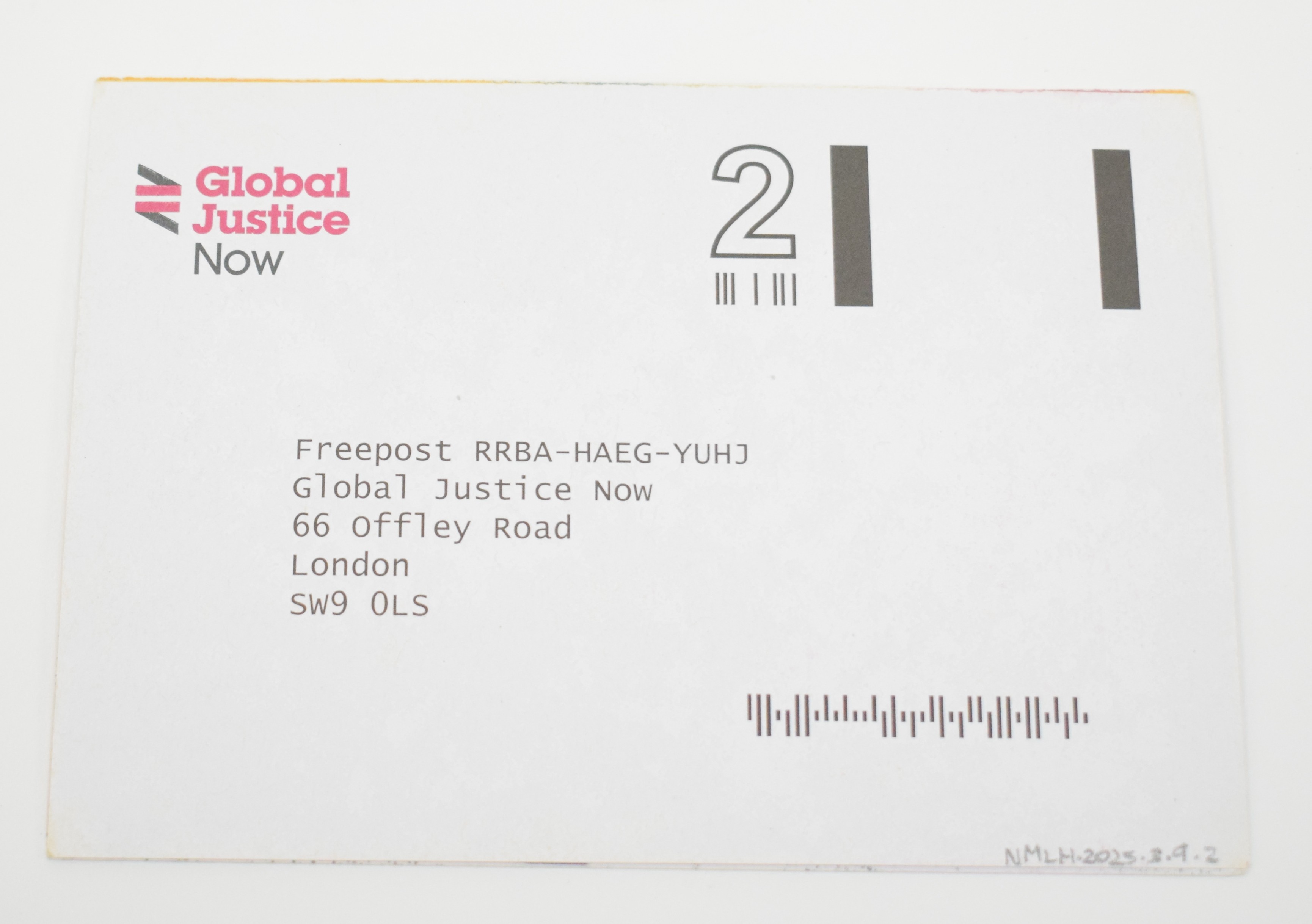 The back of the leaflet shows freepost postage to Global Justice Now.