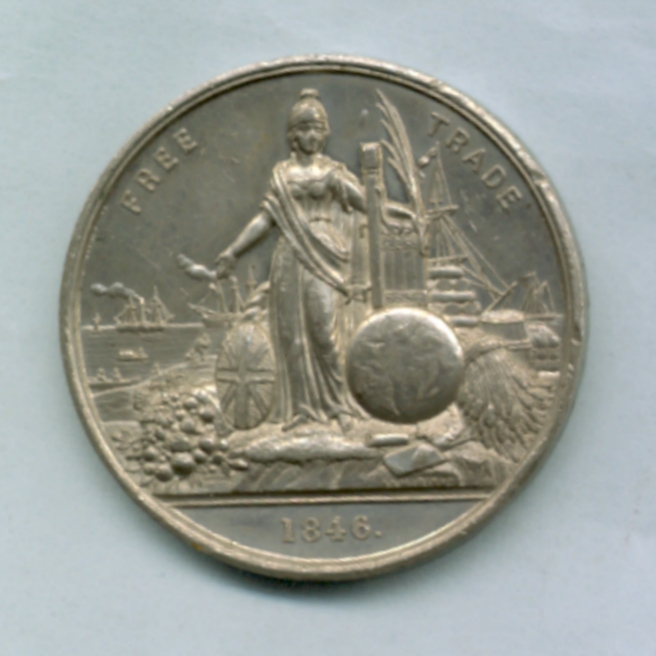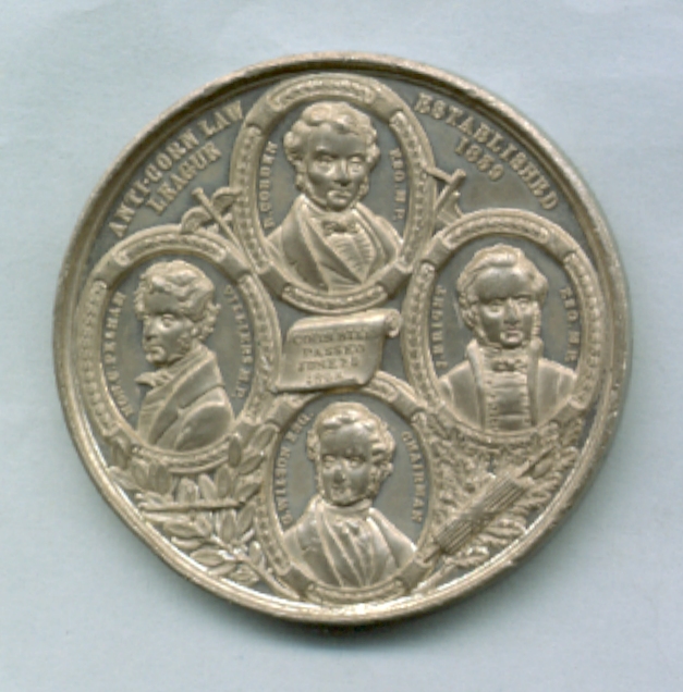 This medal was produced to celebrate the repeal of the Corn Laws in 1846. The league leaders are depicted.