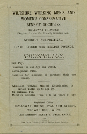 WILTSHIRE WORKING MEN'S AND WOMEN'S CONSERVATIVE BENEFIT SOCIETIES HOLLOWAY PRNICIPLE ... ... 1936 PROSPECTUS . SICKPAY ... ... ...
