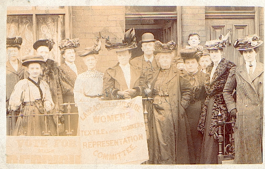 "photograph & postcard & Lancashire And Cheshire Women's Textile And Other Workers Representation Committee & 1908" [NMLH.1995.26]