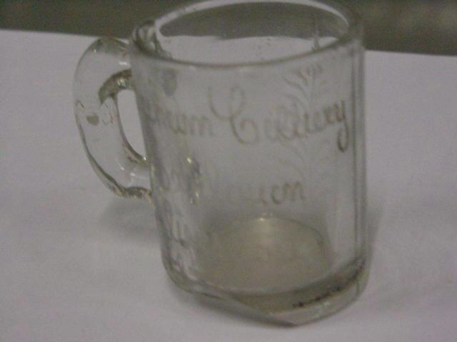 1 x miniature beer glass 5.3 centimetres tall, badly chipped at date 188[9], commemorating Seham coliery explosion