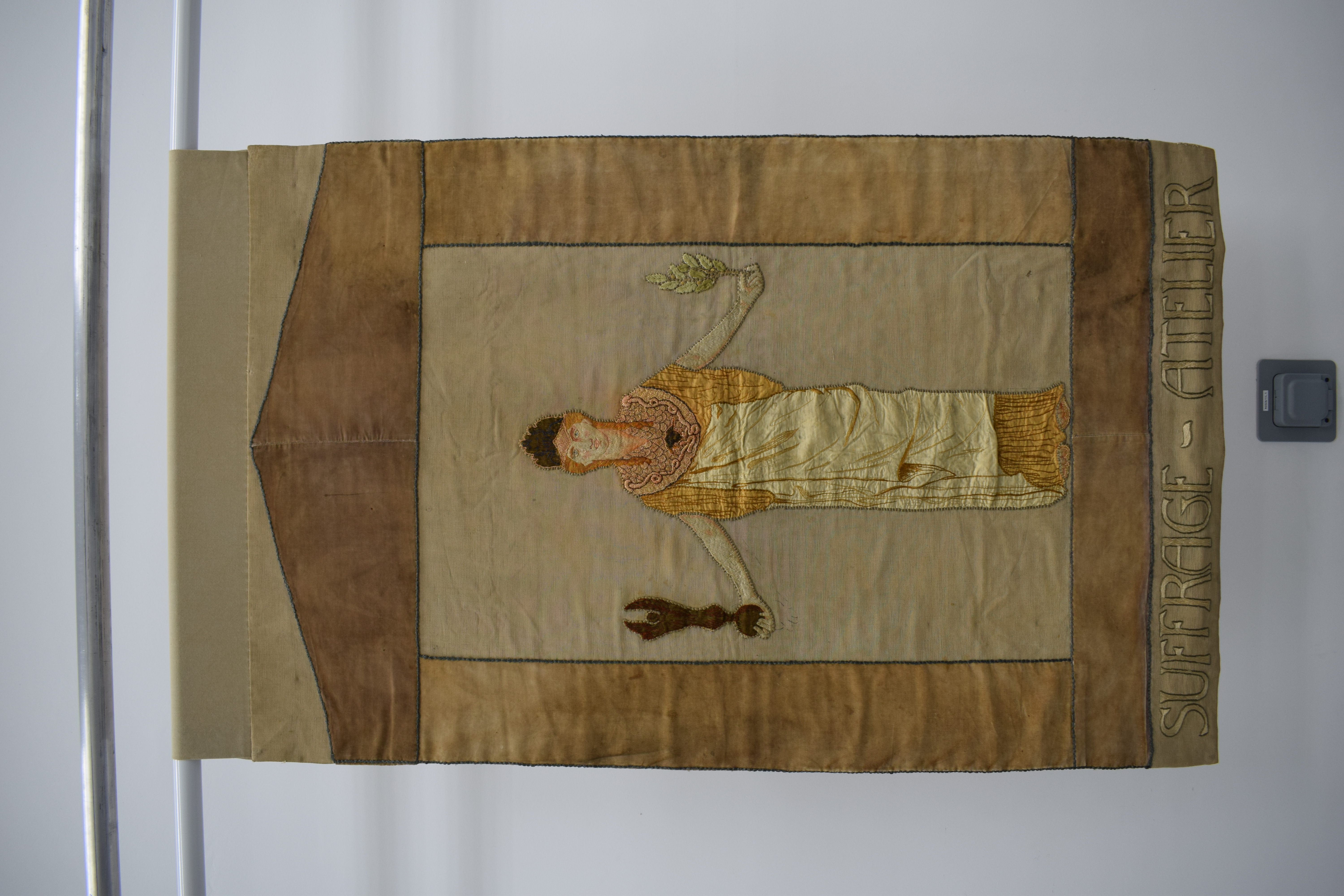 The London based Suffrage Atelier was founded in 1909 and operated until the outbreak of World War I in 1914. It was established as 'An Arts and Crafts Society Working for the Enfranchisement of Women'. The Atelier encouraged non-professional artists to submit work and paid them a small percentage of any profits made from work sold. The Suffrage Atelier made many of the surviving women's suffrage banners.