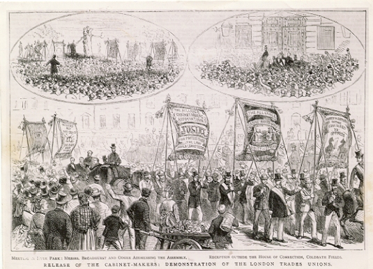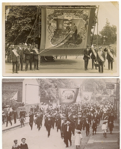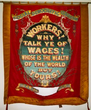 banners on march, marches, rally, rallies and demonstration, demonstrations, gala days, 1870s-1980s; 1926 General Strike; banners in exhibition.