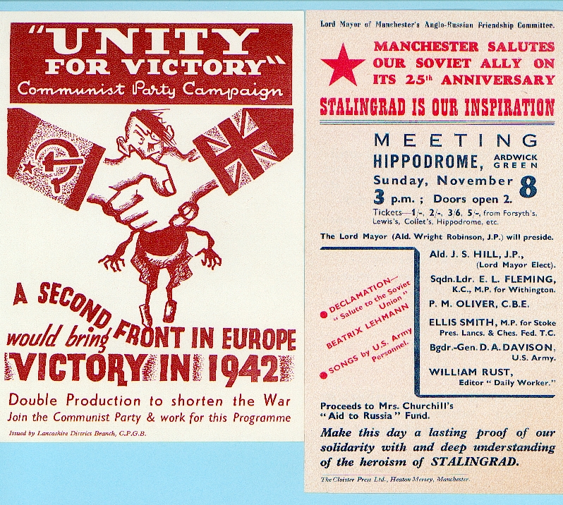 In June 1941 Germany invaded the Soviet Union. The Communist Party of Great Britain produced a wide range of leaflets in their campaign to get the Allied governments to open a Second Front in Western Europe and aid Russia. The party had an active membership in industrial Manchester and Lancashire.