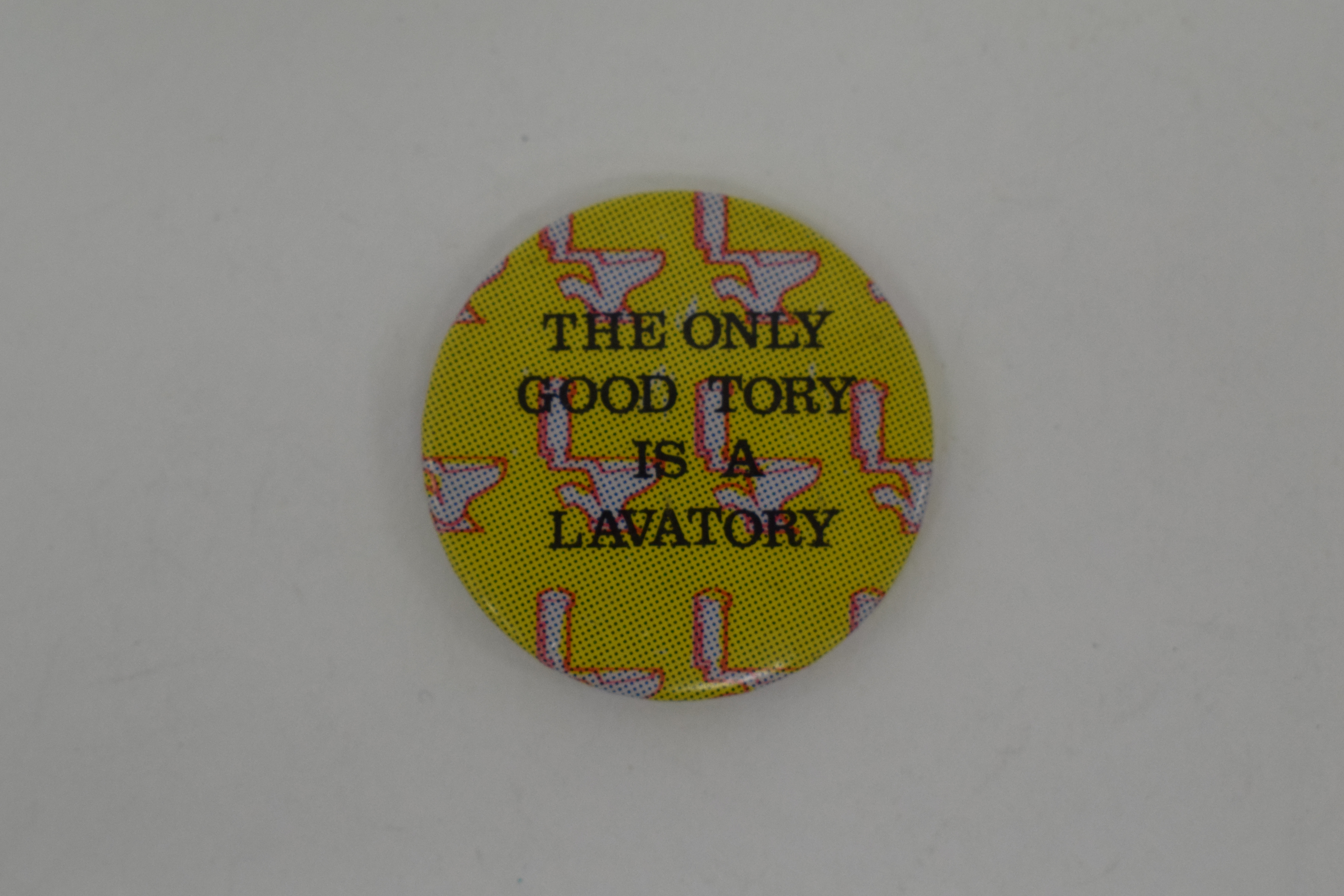 "The Only Good Tory Is A Lavatory badge" [NMLH.1991.59.13]